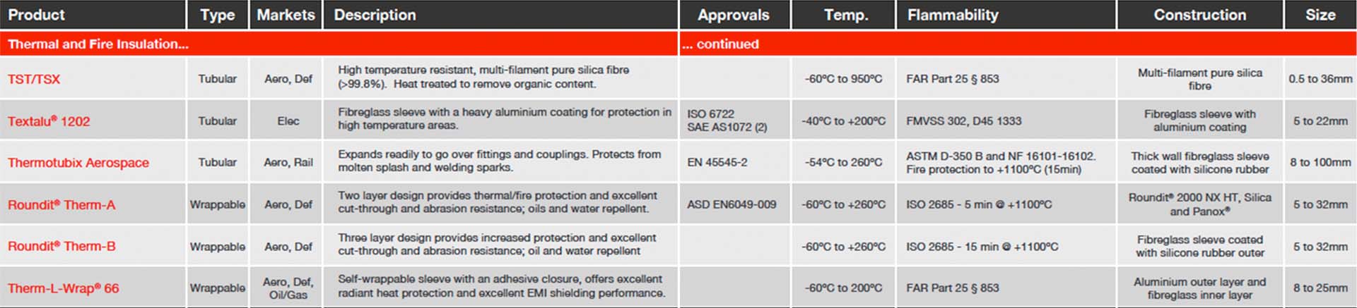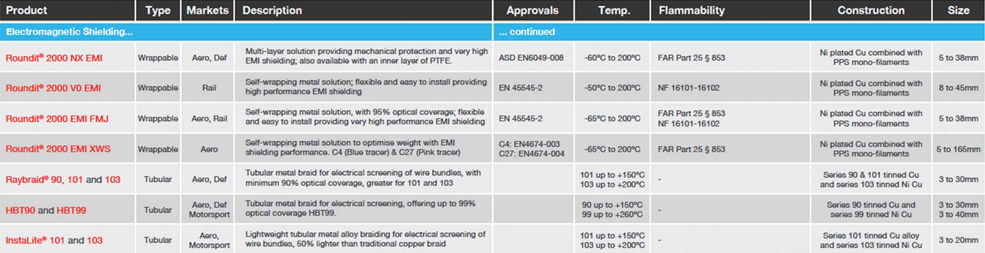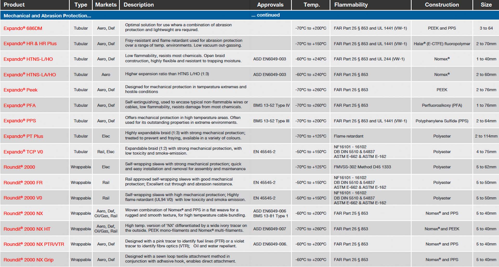 A range of protective sleevings are available from world leading manufacturers, providing protection for electrical harnesses, hoses & pipes against heat, abrasion, chemicals, fluids and noise. Applications range from commercial products through to high performance products, that can be used in the most demanding environments. Protective sleevings come in a wide variety of constructions, sizes and colors including wrap-around, push-on, heat-shrinkable, spiral binding, metal braids and protective edging. Temperature capabilities range from -70°C to +1100°C.