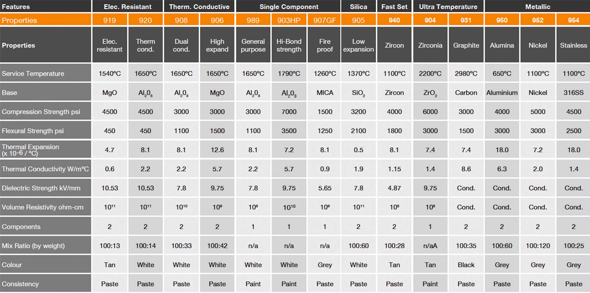 - EPOXY compounds and fillers, operating temperatures up to 340ºC