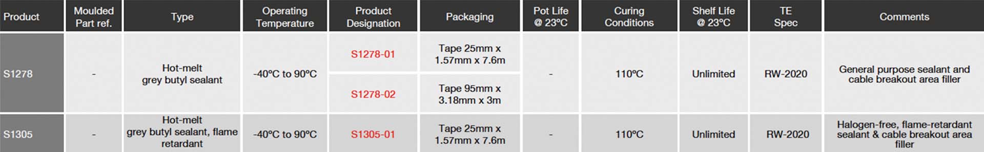- S1255-04, S1260 and S1305 – Hot melt adhesive sealant tape