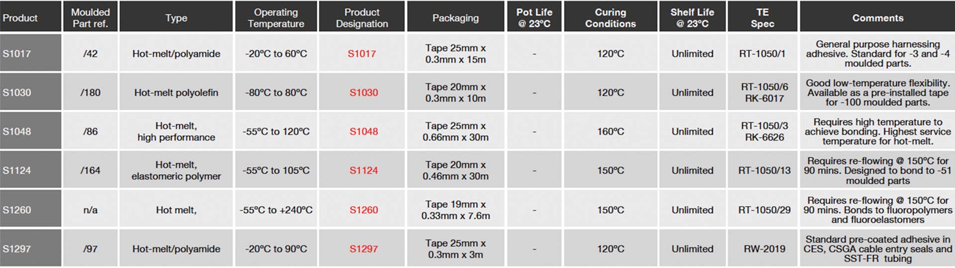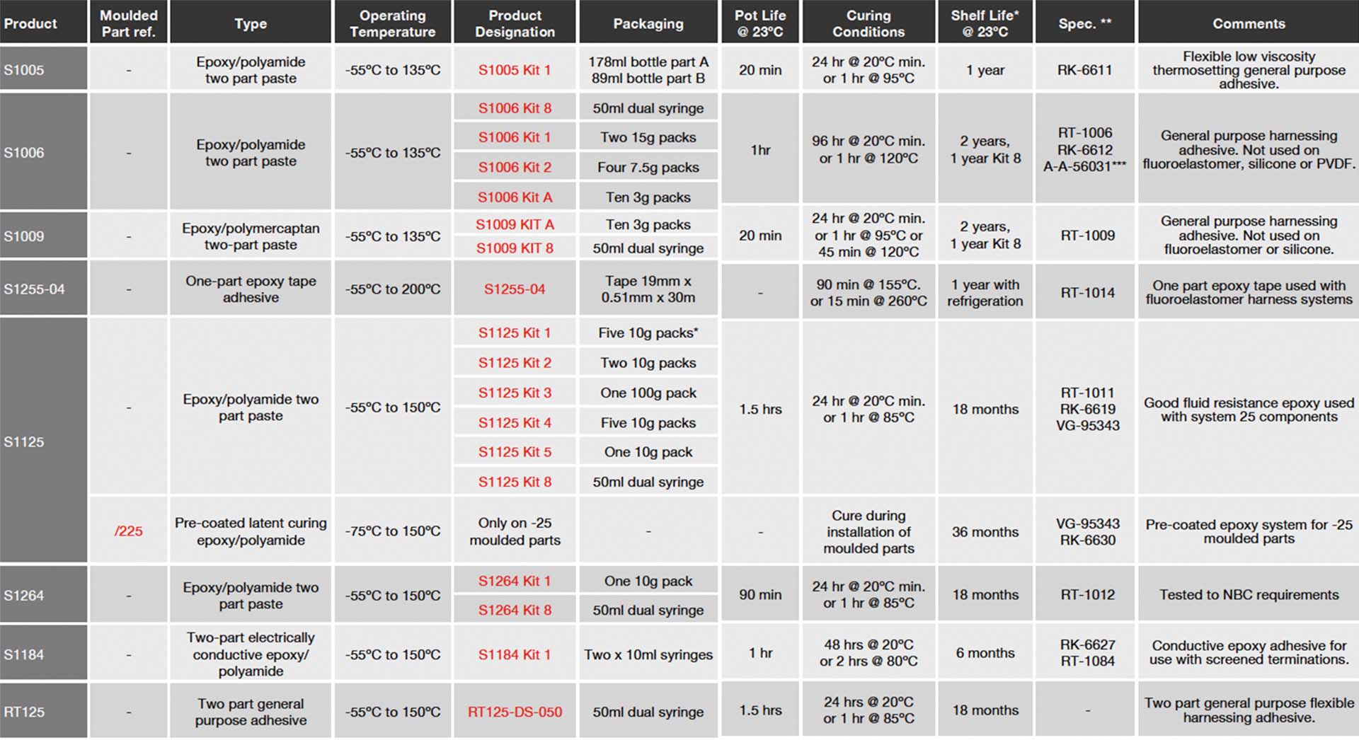 - S1005, S1006 and S1184 – Two part epoxy adhesives.